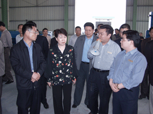 2003年5月22日,副省長文海英在市領導丁海中、姚玉舟、顧章根、陳鵬、劉榮華等陪同下來我公司視察。陪同考察的還有省政協(xié)副主席王鶴齡、省交通廳廳長王興堯、省水利廳副廳長章貽義、省工商局副局長韓培剛等。