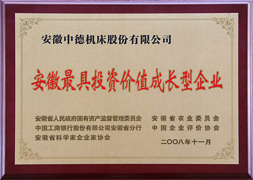 能夠進(jìn)入2008年安徽最具投資價(jià)值企業(yè)的評(píng)估百強(qiáng),是對(duì)企業(yè)各個(gè)方面的能力的權(quán)威肯定,因?yàn)樵u(píng)價(jià)結(jié)果將為各級(jí)政府決策提供參考依據(jù),為金融機(jī)構(gòu)、融資機(jī)構(gòu)的企業(yè)信貸決策提供參考依據(jù),為企業(yè)充分展示自身的成長能力、投資價(jià)值和戰(zhàn)略合作伙伴提供機(jī)會(huì)。此次進(jìn)入“2008安徽最具投資價(jià)值成長型企業(yè)百強(qiáng)榜”對(duì)于中德機(jī)床來說,意義深遠(yuǎn)。中德將在技術(shù)創(chuàng)新,開辟廣闊市場方面做進(jìn)一步的努力。