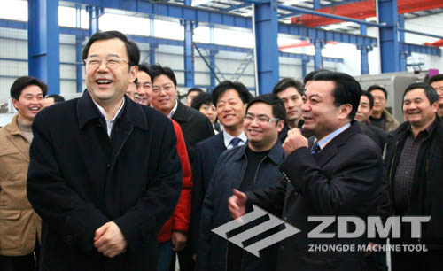 孫志剛副省長認真的參觀了中德機床一萬平方的裝配車間,他關切的詢問了鄭總關于中德機床的歷史來源,生產銷售情況,以及市場前景。鄭總也很熱情的向孫志剛副省長匯報了情況:中德機床歷史十余年,名字的寓意是我公司是中國的企業(yè)但是目標是為追求德國卓越的產品品質以及體現(xiàn)我公司“以德治企”的管理理念。公司近幾年來的快迅發(fā)展,雖然離不開公司一直以來的勵精圖治工作態(tài)度,更離不開的是省內外發(fā)展的大背景,和中國開放的國際眼光。中德機床內貿外貿并舉,業(yè)績逐年穩(wěn)步上升,勢頭良好。孫志剛副省長頻頻微笑點頭,對中德機床的企業(yè)狀況感到欣慰。同時,孫志剛副省長也激勵我公司,一定要抓住機遇,繼續(xù)發(fā)展。