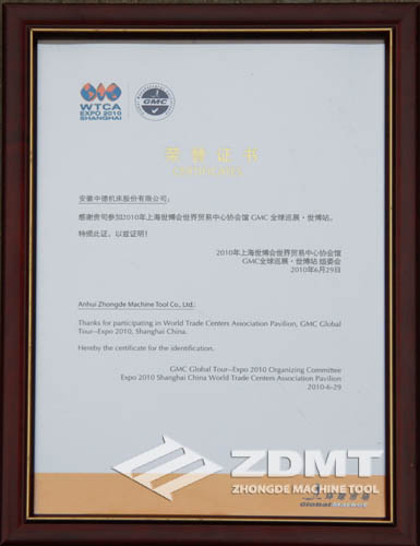 2010年7月1日下午,一場貼上“中國制造,世界的驕傲”標(biāo)簽的各行業(yè)標(biāo)志性品牌在上海世博會世界貿(mào)易中心協(xié)會GMC館高調(diào)亮相。安徽中德機(jī)床股份有限公司領(lǐng)航國內(nèi)機(jī)床行業(yè)其他品牌,作為行業(yè)代表身份出席,參加了企業(yè)亮燈儀式同時(shí)接受GMC委員會頒發(fā)的獎(jiǎng)牌和證書,正式成為“2010年世博會世界貿(mào)易中心協(xié)會館贊助商GMC成員”,此舉在對中德機(jī)床綜合實(shí)力提升和在行業(yè)中領(lǐng)先地位的充分肯定的同時(shí),也對我們提出了更高的要求,我們將為創(chuàng)建一個(gè)具有國際競爭力的卓越企業(yè)、鍛造一個(gè)具有百年發(fā)展的民族品牌而繼續(xù)努力!